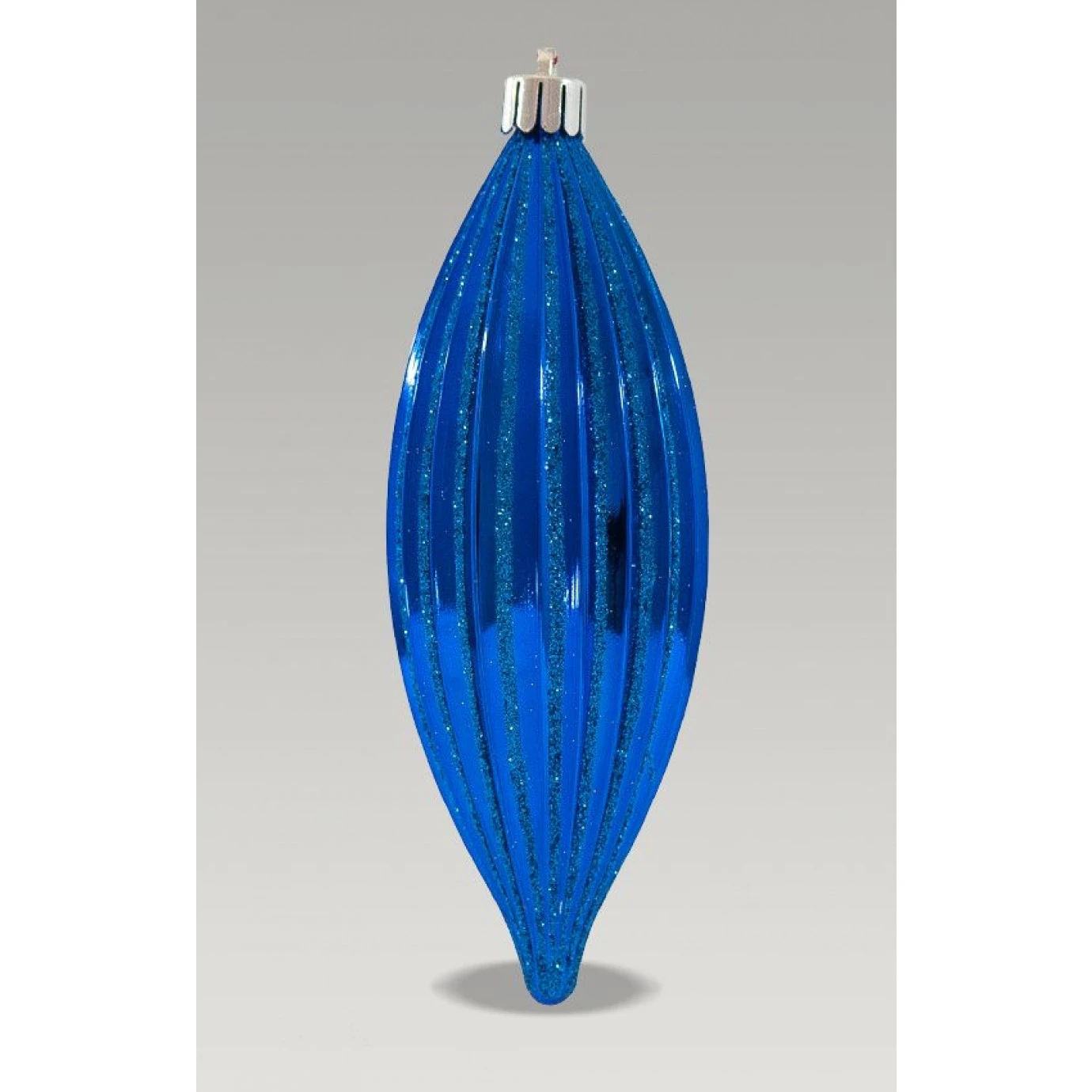 A single 160mm bauble made from plastic with posable hook and glitter stripe pattern decoration.