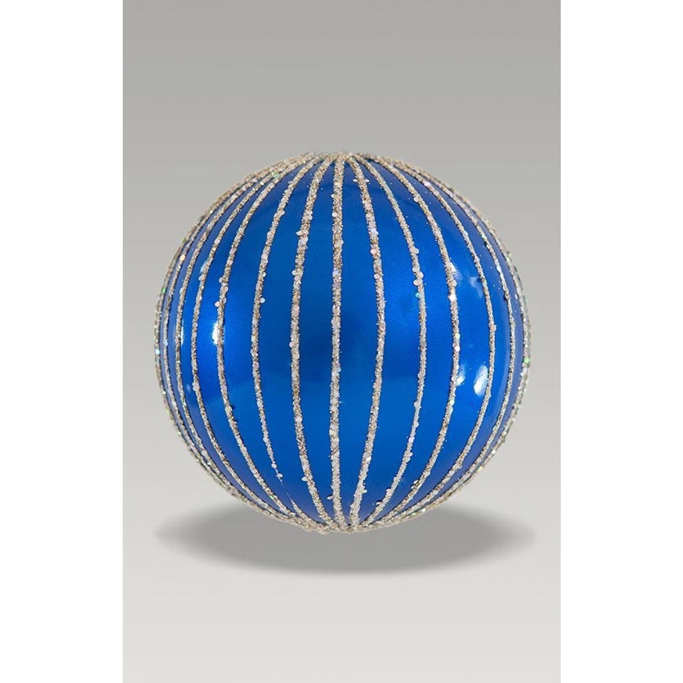 A single 80mm bauble made from plastic with posable hook and glitter stripe pattern decoration.