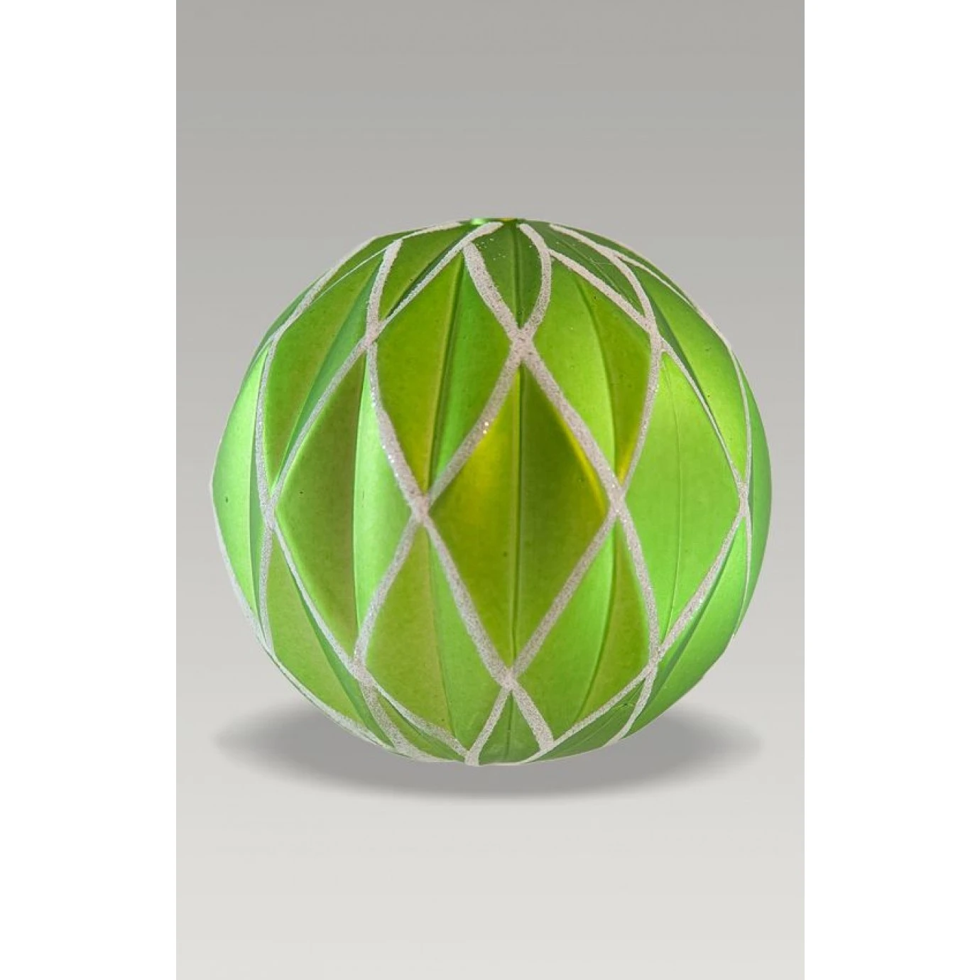 A single 80mm bauble made from plastic with posable hook and glitter harlequin pattern decoration.