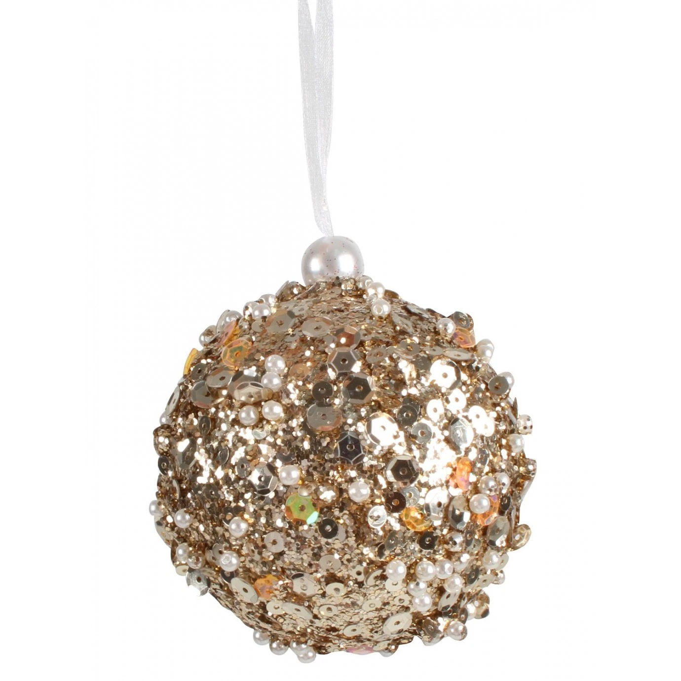 Features a ribbon loop for hanging. Measures approximately 7 cm in diameter.