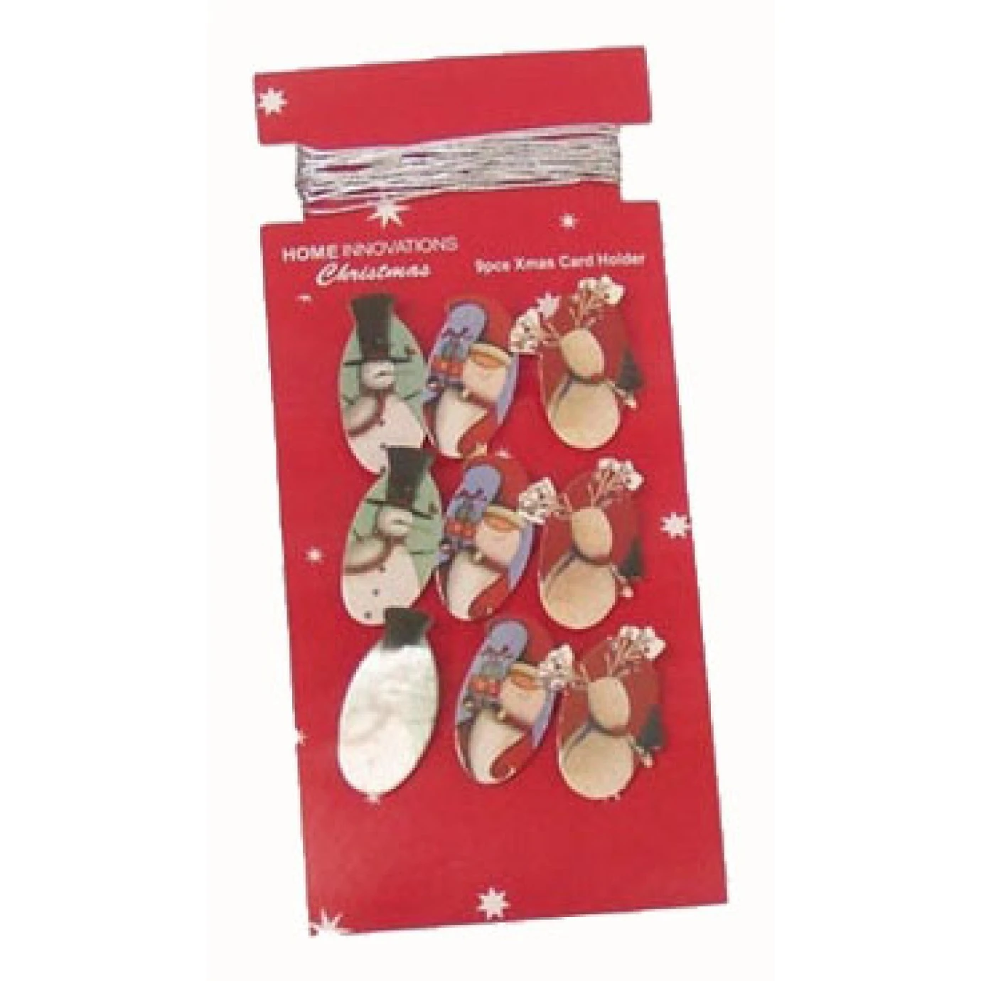 Display your Christmas cards and turn them into a decoration in their own right with this set of nine card holder pegs!