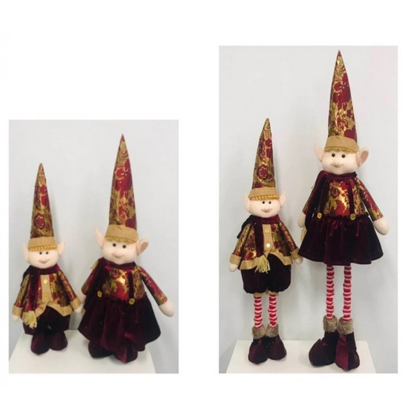 Christmas Character decoration is made with quality polyester clothing and plush padding, and telescopic metal legs. Please note, the image here shows both variants with legs retracted.