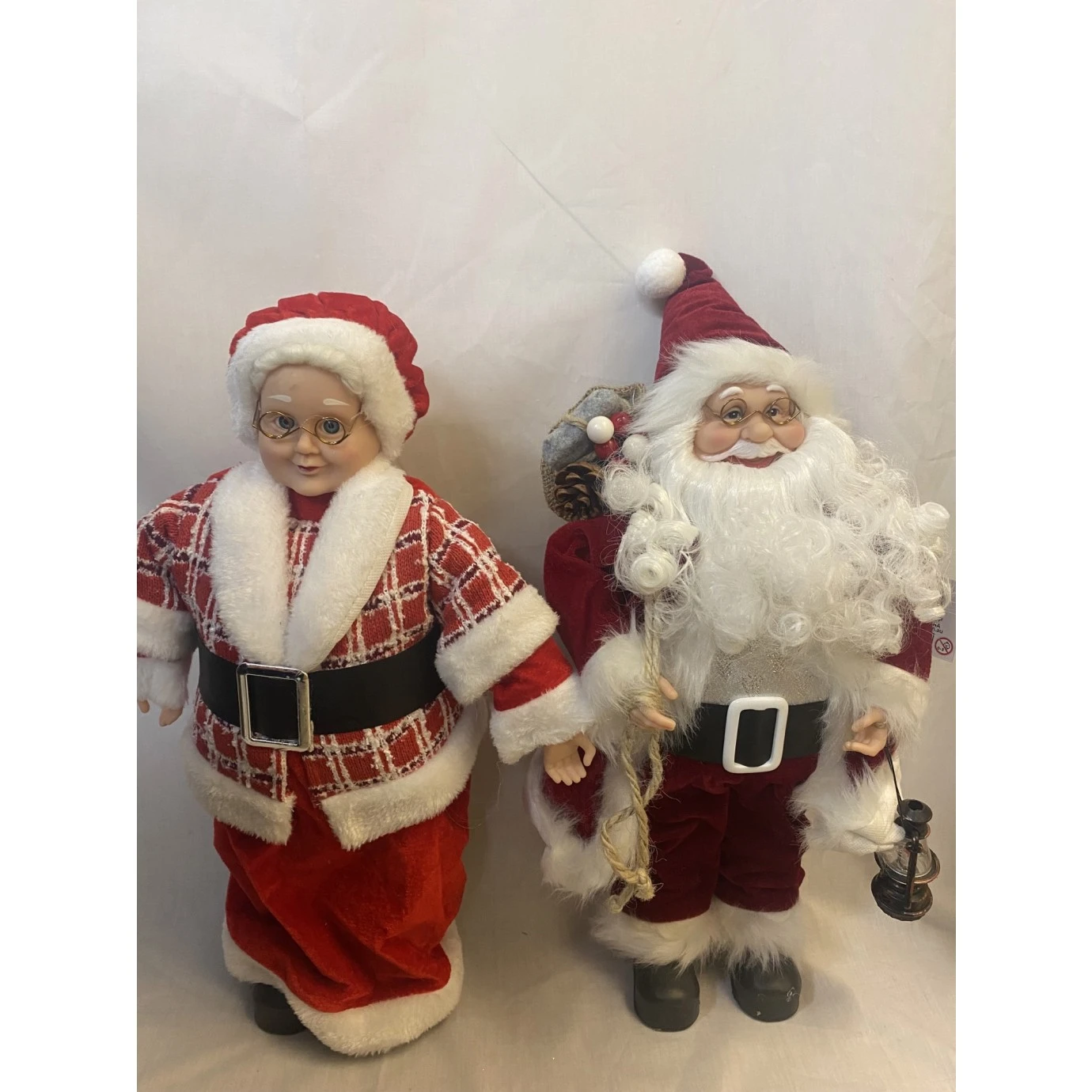 Mr and Mrs Claus are made from plastic with polyester costumes and plastic accessories.