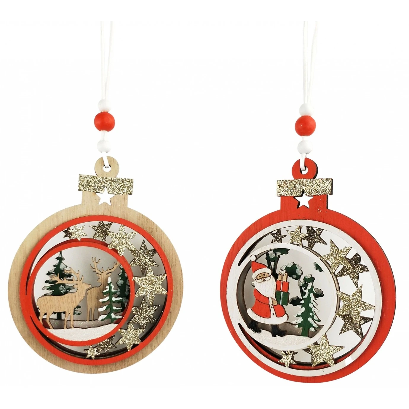 Christmas Ornament – 13cm Wooden Bauble Red, Assorted