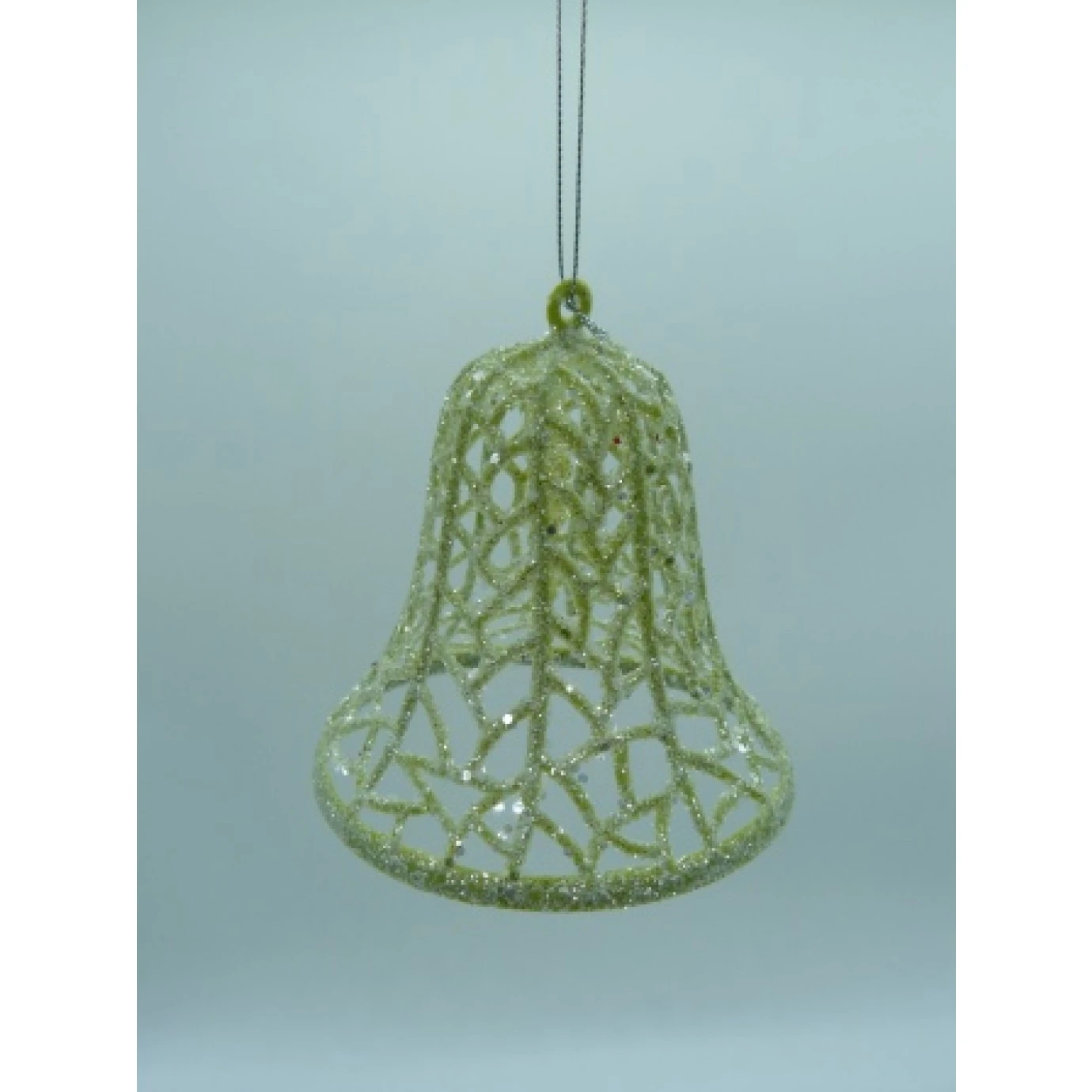 Decoration made from glitter coated wire and measures approximately 9cm in height and diameter.