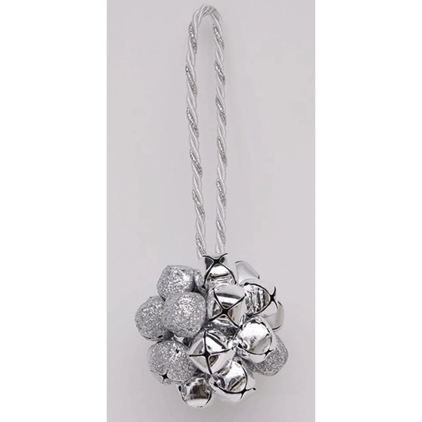 A single hanging ornament for your Christmas tree, made from metal bells and polyester ribbon. Measures approximately 5 cm in diameter.