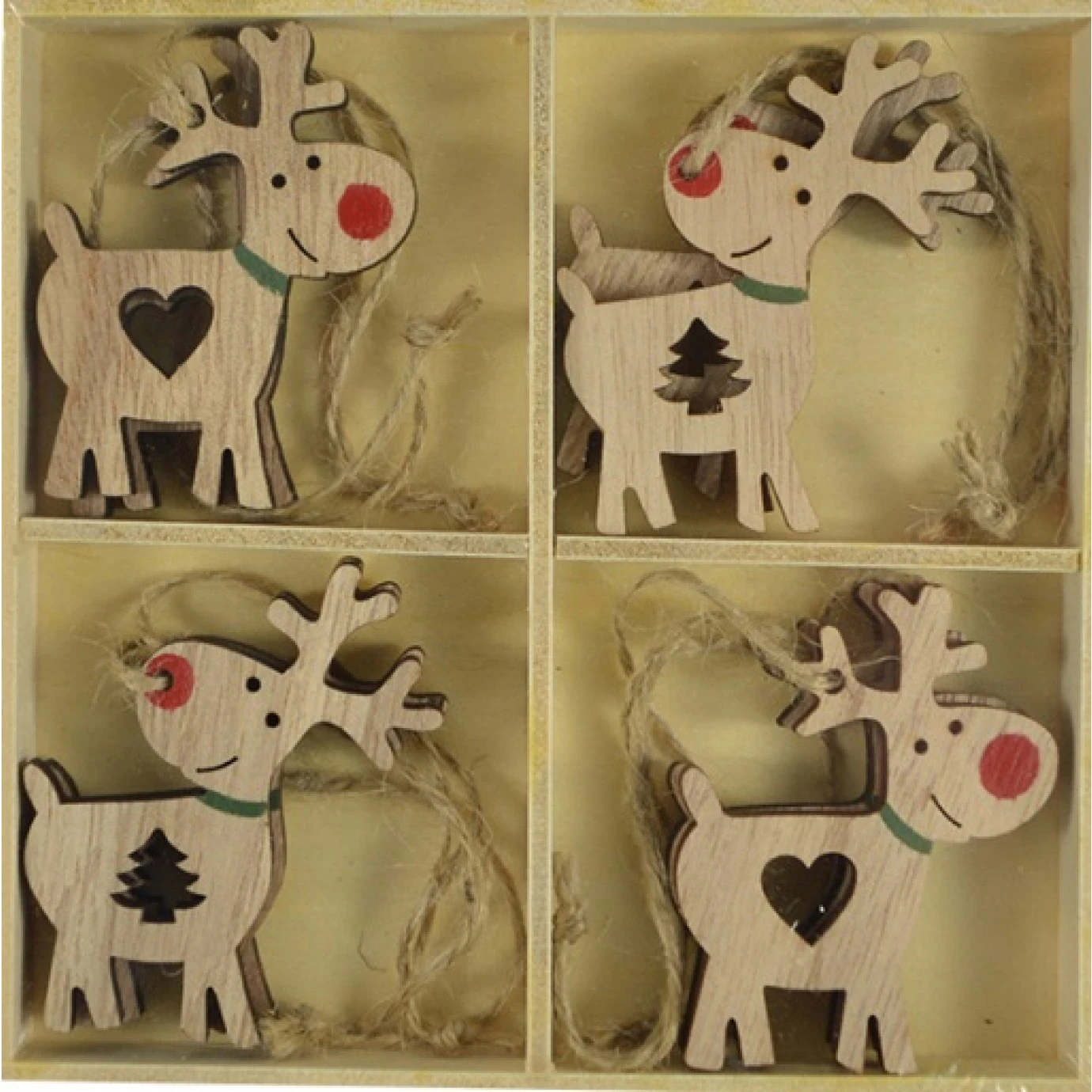 Pack contains 8 individual MDF ornaments with attached twine hangers. Each ornament measures approximately 6 cm by 4.5 cm.