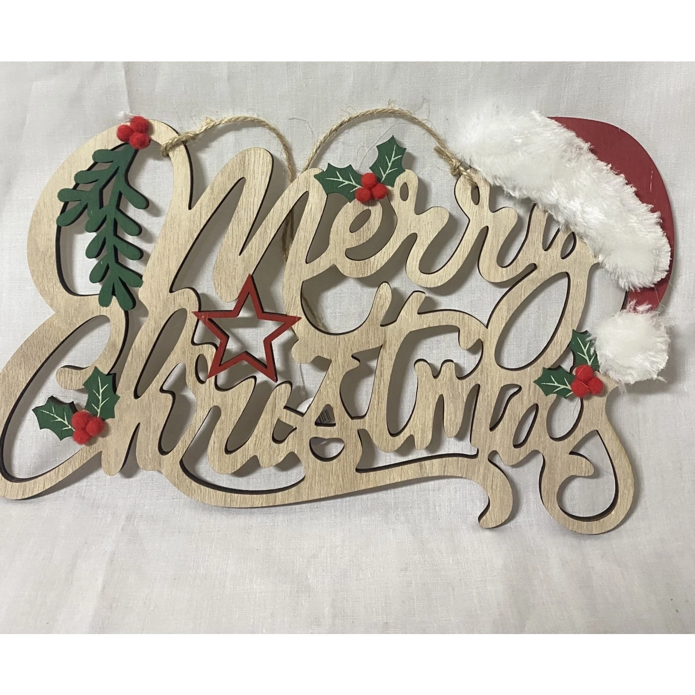 Wall decoration is made from wood with painted finish, and various decorations make from polyester. Features a twine hanger.