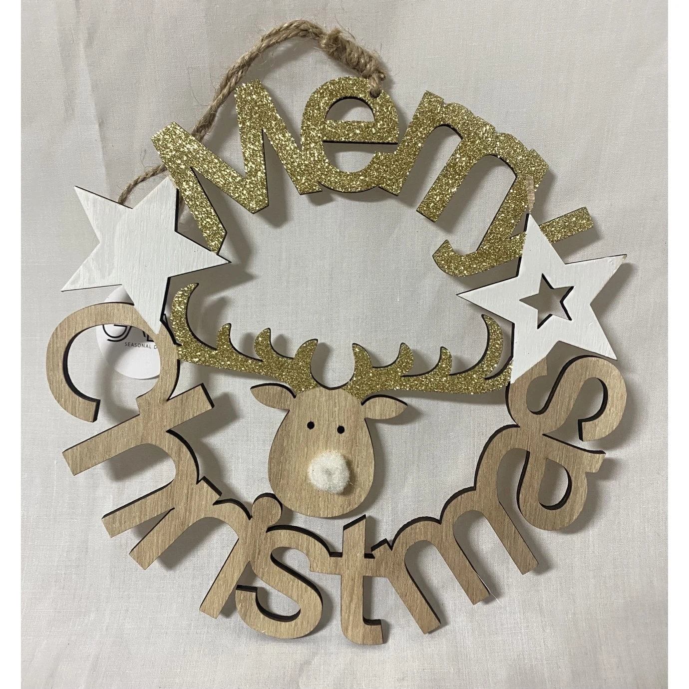 Wall decoration is made from wood with painted and glitter finish. Polyester reindeer nose.