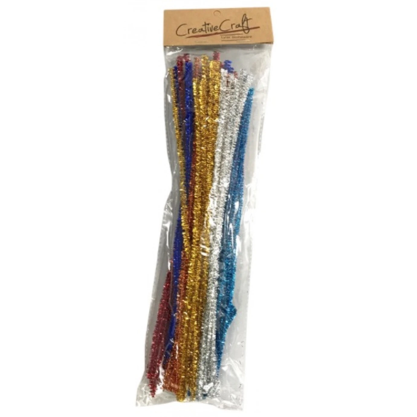 Pack contains 35 pipe cleaners in assorted pastel colours (purple, yellow, green, pale blue and pink). Each pipe cleaner is approximately 30 cm long and approximately 6 mm thick.