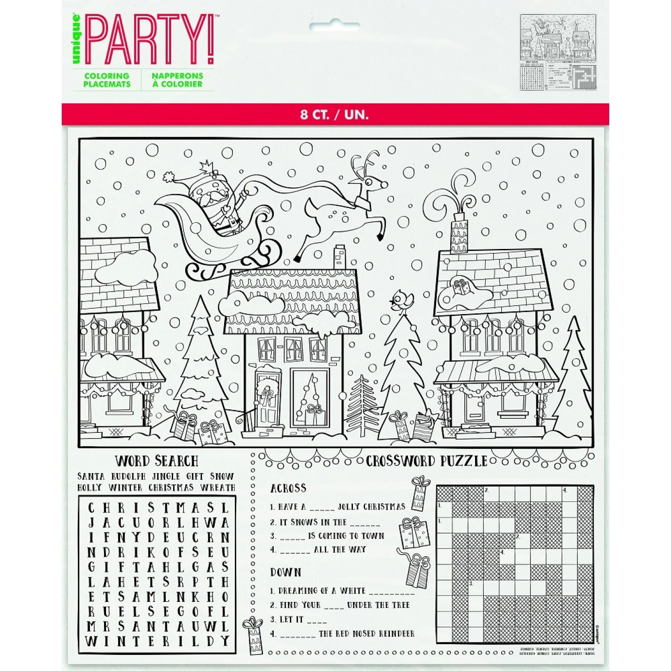 Pack contains 8 paper placemats with Christmas themed colouring in designs.