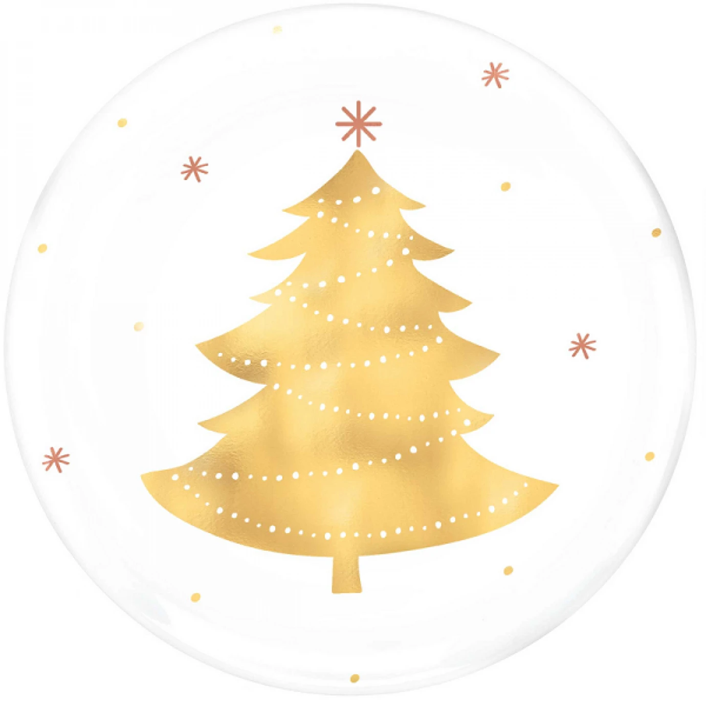 Pack contains four plastic plates with a hot-stamped foil design. Each plate measures approximately 19 cm in diameter.