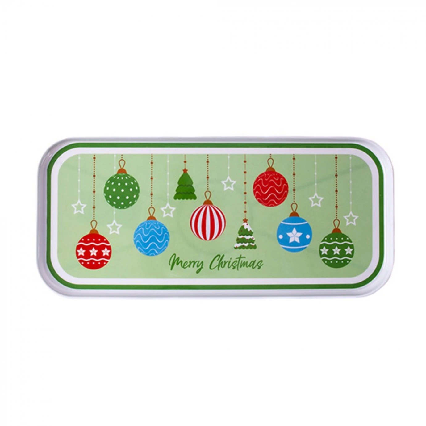 Tray is approximately 36cm x 16cm and made from melamine with a Christmas design. Features a steep lip, excellent for serving items that may slide around.
